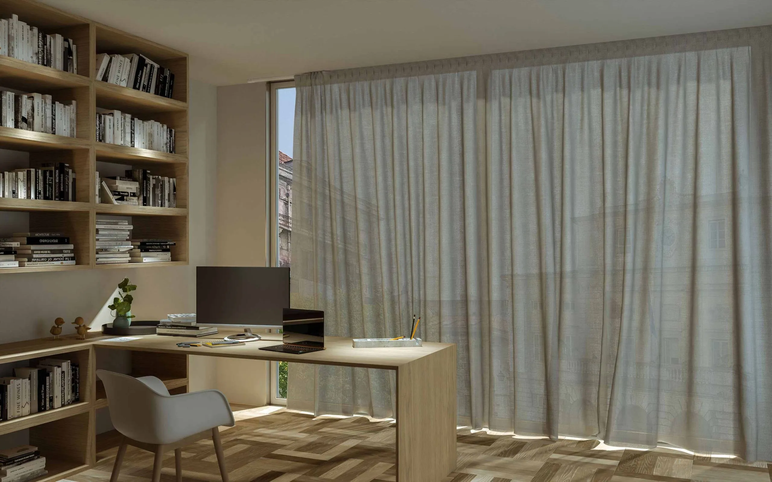 Завдяки функції «touch motion» ви можете активувати відкривання або закривання штори простим потягуванням за неї рукою. Це особливо зручно в інтер’єрах, де немає постійного доступу до пульта або кнопки управління.